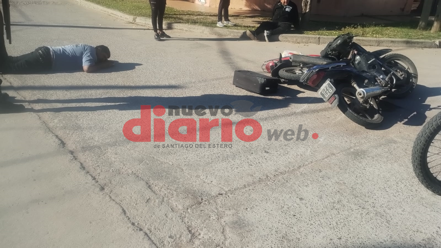 Un fuerte choque de motos ocurrió esta mañana en la esquina de calles Sarmiento y Los Warner, en la capital santiagueña, que dejó dos jóvenes lesionados y hospitalizados.