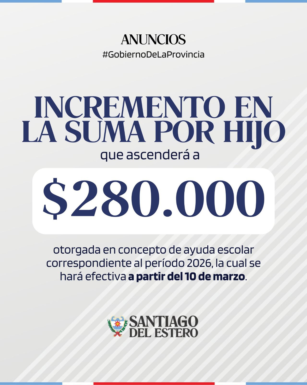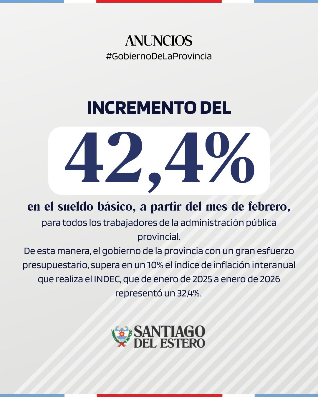 El gobernador Elías Suárez anunció este lunes un aumento salarial para la administración pública provincial y confirmó el cronograma de pago de bonos correspondiente al año 2026, que se abonarán en cuatro etapas a lo largo del año, replicando el esquema aplicado en 2025.