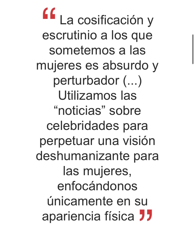 “Somos seres completos con o sin pareja, con o sin un hijo. Podemos decidir por nosotras mismas qué es bello en lo que respecta a nuestros cuerpos. Esa decisión es nuestra y solo nuestra”.