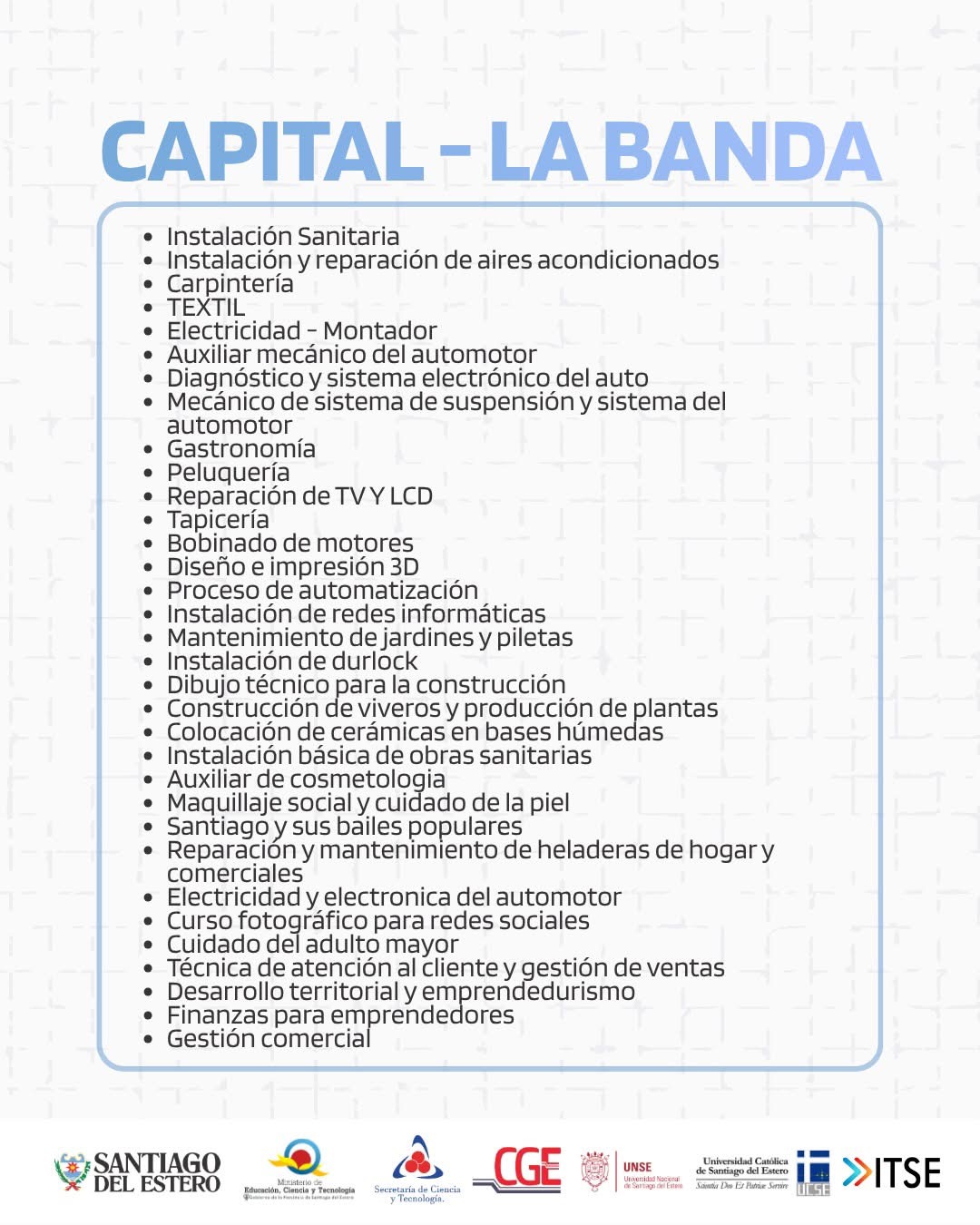 La propuesta incluye una amplia oferta de capacitaciones orientadas a fortalecer el perfil laboral de los participantes, brindando conocimientos prácticos y актуализados que responden a las demandas actuales del mercado.