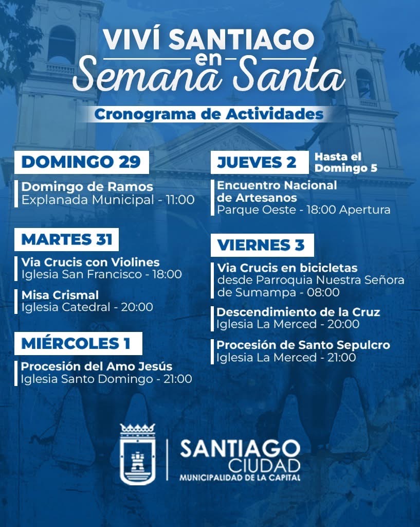La ciudad de Santiago del Estero se alista para vivir a pleno la Semana Santa, con una variada agenda de actividades que comenzará este domingo 29 y se extenderá durante los días más significativos del calendario litúrgico.