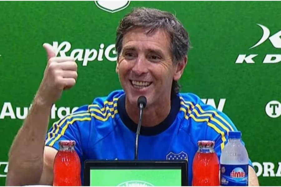 Claudio Úbeda protagonizó un momento particular durante la conferencia de prensa posterior a la goleada 4-0 de Boca sobre Defensa y Justicia, cuando los festejos del plantel se colaron en plena sala.