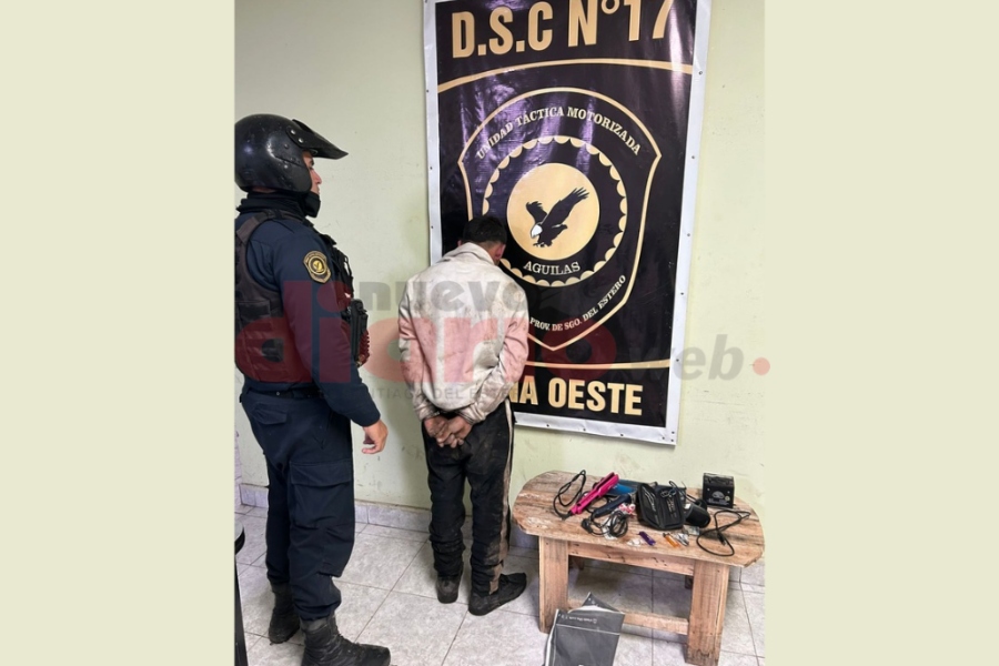 Al advertir la llegada del patrullero, "Chelco" intentó darse a la fuga corriendo, pero fue reducido a los pocos metros. Durante la requisa de rigor, los efectivos le secuestraron una bolsa de consorcio negra en la que llevaba la totalidad de los objetos sustraídos: una planchita de pelo, una buclera, un lector de código de barras, un estuche con tres tijeras y una batería de motocicleta.